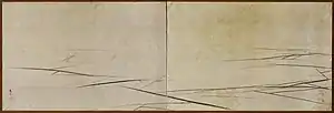 Other painters were critical of Ōkyo's style. They found it to be overly concerned with physical appearances, alleging that he was too beholden to the real world and produced undignified works.[5] Nevertheless, his style proved popular with the public, and commissions came in to do Western-style landscapes, decorative screens, and nudes. He did life drawings and used them for material in his paintings.[8] Ōkyo was probably the first Japanese artist to do life drawings from nude models.[1] The subject was still considered pornographic in Japan.[3] During his career he painted for wealthy merchants, the shogunate, even the emperor.[9]