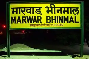 ![]() Marwar Bhinmal railway station Location within India ![]() Marwar Bhinmal railway station Marwar Bhinmal railway station (Rajasthan) | |