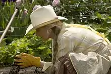 MaryJane's Outpost, published by Clarkson Potter on June 24, 2008,[34] is a romanticized and feminine look at camping, farming, and outdoor activities.[5] Projects include building willow furniture, sleeping in outdoor canopy beds, using outdoor bathtubs, fishing, and hunting. The book is divided into three major sections: "Outbound" … going out to the yard, engaging children in the outside world, making natural gifts, and creating family rituals, such as the simple act of having tea outside; "Outrigged" … weekend camping and picnics, enjoying fishing or hunting; and "Outstepping" ... backpacking, enjoying wild foods, being safe in the water and wild, and outdoor jobs.[35] The New York Times Book Review had this to say: "MaryJane Butters was once a single mother of two and a forest ranger, among other tough jobs. She is now an organic farmer, a grandmother, and an activist, living on a farm in Northern Idaho … MaryJane's Outpost: Unleashing Your Inner Wild is her third book, and it's a dilly. It lures readers outdoors with its Ralph Lauren styling (Ms. Butters' long blond braid and handsomely weathered face are complemented by an atmospheric tractor) and instructions on how to do all sorts of things, like make willow furniture and build an outdoor bed or bathtub … Ms. Butters has a way with words: Glamping, or glamour camping, one of her pet concepts, is about “the juxtaposition of rugged and really pretty, grit and glam, diesel and absolutely darling,” she writes."
