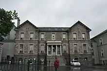 Living in a building formerly used as a tavern, they had two bedrooms and a small parlour which served "for choir, refectory, community and all," with the rest of the building and a nearby disused slaughterhouse for teaching.[6] By 1848, they offered instruction in spelling, reading, writing, English grammar, history (both sacred and secular), geography, arithmetic, natural history (taught from a book of the Irish National Schools), spinning, and needlework.[6] In time they also trained teachers. In some communities, classes were held for older, illiterate girls who worked as domestic servants, arguably the beginning of adult education in Newfoundland.[7]