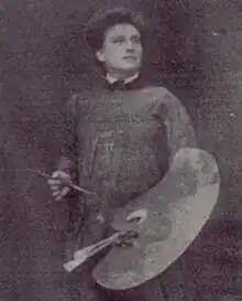 Raphael abandoned her daughter, Gladys, into the care of governesses as she proceeded to train herself to be an artist.[1] One of her tutors was Solomon J Solomon and he exhibited a painting in 1895 of Gladys. Raphael trained in London and Paris and her 1896 nude "Wood Nymph" was exhibited at the Royal Academy. Her painting of the writer A. E. W. Mason became a frontispiece of one of his books.[2]