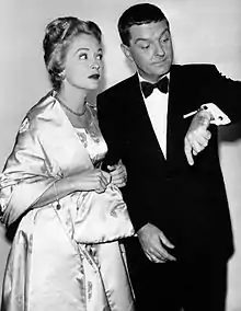 Among the couple's other joint ventures on television were The Stork Club (1950), a CBS interview program;[7]: 718 NBC's The Peter Lind Hayes Show (1950–51), a live situation comedy in which they played themselves on a set matching their actual New Rochelle home;[7]: 594 the second season of the CBS variety show, Star of the Family (1951–1952);[7]: 594 and the NBC sitcom Peter Loves Mary (1960–61), in which they played a show business couple with two children who are adjusting to suburban life.[7]: 594 [9] Healy and Hayes were among the substitute hosts of The Tonight Show in 1962, between Jack Paar's departure and Johnny Carson's arrival,[7]: 771 and they were regular substitute hosts on Arthur Godfrey's TV programs.[10] They were frequent guest panelists and once were the mystery guests on the long-running quiz show What's My Line?[1] The couple were also celebrity contestants on the TV game show Password.