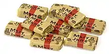 Mary Jane is an old-fashioned peanut butter- and molasses-flavored taffy-type candy. Originally made in 1914 by Robert O. Lord's candy manufacturing company, he named it after his favorite aunt. Lord sold his company to the Charles N. Miller Company in the Depression. It was then made by Stark Candy Company.[1] It was later manufactured by Necco starting in 2008 following their acquisition of Stark Candy.[1] Charles Miller initially made candy in his kitchen in what was once the home of Paul Revere.[2] It has featured the same "little girl" illustration on its wrappers since its inception.