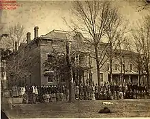 After the Civil War, many Cherokee children found themselves orphaned or with only one living parent who had to travel to find employment. Mary Jane and William Potter Ross engaged in the work of founding an orphan asylum.[20] In 1872, The Cherokee Nation began considering possible locations for an orphanage, including Mary Jane's family home, owned by her father Lewis Ross, who died in 1860. Lewis Ross' home was a large three-story brick house located along the Grand River in the Salina District with the potential for expansion. Chief William P. Ross, as the executor of the Lewis Ross estate, stood to profit from the sale of the properties.[21]