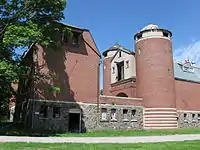 The building consists of split fieldstone native to Marylake, based on designs by J. Stuart Cauley.