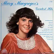 Mary MacGregor's Greatest Hits is an greatest hits album released in 1979 containing the singer's 1977 #1 hit "Torn Between Two Lovers"[1] and a selection of other tracks from her two Ariola Records album releases as well the tracks from MacGregor's final Ariola single release "The Wedding Song (There Is Love)" and "Benjamin". The album does not contain the singer's Top 40 hit from the Meatballs soundtrack: "Good Friend", which had been an RSO Records release.