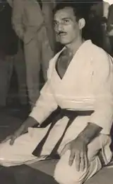 In 1949, after competing in Hawaii, Kimura and his professional wrestling troupe formed by 6th dan Toshio Yamaguchi and 5th dan Yukio Kato traveled to Brazil by invitation of Ryo Mizuno from the São Paulo Shimbun newspaper.[3] The idea had been proposed by resident judoka Takeo Yano due to his very public enmity with the brothers Carlos and Hélio Gracie, practitioners of "jiu-jitsu" (as judo was called in Brazil at the time).[3][4] Yano had competed against Hélio in a jiu-jitsu match in 1937, dominating the bout but being unable to avoid a time draw, so he had asked for a rematch over the years to no avail (he had also worked extensively in catch wrestling events with George Gracie, who wasn't considered to be at Carlos' and Hélio's side at the time).[3][4] Expecting Kimura's troupe to attract Gracie's interest for a challenge match, Yano and his partner Yasuichi Ono helped Mizuno to bring them to Brazil.[5]