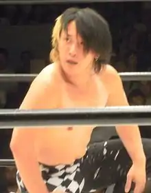 He also wrestled in as HUSTLE Kamen Blue, a member of HUSTLE Kamen along HUSTLE Kamen Red and HUSTLE Kamen Yellow.