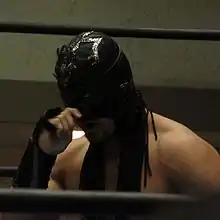 Masamune (政宗, Masamune)[3] (born August 16, 1974) is a masked Japanese professional wrestler. He currently works for Dotonbori Pro Wrestling and has also worked for Kaientai Dojo (K-Dojo) and Osaka Pro Wrestling (OPW) in Japan.[2] For several years he formed a tag team with Japanese wrestler Hideyoshi and was also part of a group known as Bad Force. Greatly influenced by lucha libre, Masamune has followed Mexican tradition for masked wrestlers, so his real name is not a matter of public record.
