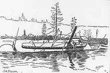 Steamboat operations on the Lewis River were made difficult by the presence of numerous sunken trees and logs, called "snags."[22] Steamboat operators had to plan ahead for striking snags and be ready to beach their vessels in case of emergencies.[22] According to a January 1900 Morning Oregonian report, "the north fork of the Lewis river just below Woodland is a perfect next of snags, enough to make a steamboatman’s hair stand on end, and the only wonder is that more boats are not sunk there."[23]