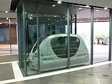 In October 2010 it was announced the PRT would not expand beyond the pilot scheme due to the cost of creating the undercroft to segregate the system from pedestrian traffic.[33] Subsequently, a test fleet of 10 Mitsubishi i-MiEV electric cars was deployed in 2011 as part of a one-year pilot to test point-to-point transportation for the city as a complement to the PRT and the freight rapid transit (FRT), both of which consist of automated electric-powered vehicles.[34][35]