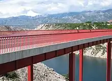 Maslenica Bridge (Croatian: Most Maslenica,[1] but also known as Croatian: Maslenički most) is a 377.6 m (1,239 ft) long reinforced concrete arch bridge spanning the Novsko Ždrilo strait of the Adriatic Sea, north of Zadar, Croatia, carrying the Croatian A1 motorway. It is located between the Maslenica and Posedarje interchanges of the A1 motorway.[2]
