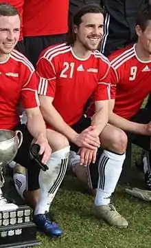 Mason Webb (born May 6, 1986) is an American former professional soccer player. He currently plays for Surrey United Firefighters. Upon playing midfield in his youth career, Mason has moved to an outside fullback position where he has been regarded as one of the top defenders in the VMSL. Earning the top point scorer as a defender, netting two goals, and getting nine assists for a total of 13 points, during the 2011 season VMSL season.[1] His accuracy in passing and crossing, his speed going forward and closing down attackers, and his control on and off the ball have led to him to the nickname "the Jag," short for the Jaguar.