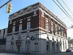 The Masonic Temple is a historic Masonic Lodge building located at Parkersburg, Wood County, West Virginia. It was built in 1915, and is a three-story, three-bay wide, red brick building with stone trim in the Classical Revival style. It features elliptical bays flanking the central bay on the front facade.[2] The building was designed by Columbus architect Frank Packard with local supervising architect Theodore T. Sansbury.