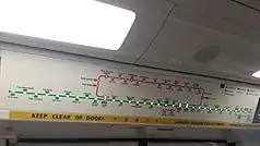 Prior to the 2020 circuit breaker measures during the early stages of the COVID-19 pandemic, the public transport operators and LTA were criticised by some commuters for its delayed actions of crowd control and the enforcement of social distancing on public transport.[86] In response, the LTA rolled out a series of precautionary measures, such as social distancing measures and making the wearing of masks in public transport mandatory.[87][88][89] Social distancing markers were progressively implemented in the MRT trains and stations which commuters must adhere to; enforced by auxiliary officers and transport ambassadors.[90] The significant reduction of commuters as remote work increased resulted in the transport operators reducing train frequencies and closing stations earlier from 17 April.[91][92][93] However, train frequencies were shortly reverted to normal upon review and feedback from the public.[94][95][96]