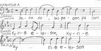 In movements of the Gloria, most prominently in the "Quoniam," Beach uses double-dotted rhythms that also appear in Cherubini's Kyrie.[3] These rhythms give a march-like quality to the movement. They are paired with trumpets and drums to evoke a sense of the Church Militant. Beach's frequently modulates to third-related keys, as in "Laudamus te", in which she uses the keys of E♭ major, G♭ major, E♭ minor, and C major. Beach frequently uses C major to indicate heaven or light; here, it refers to divinity.