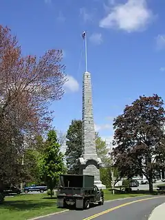 In Wayland, Route 27 has a 1.2-mile concurrency with Route 126, passing through the center of town and intersecting US Route 20. The road then crosses the Sudbury River into Sudbury and through the historic town center. It passes into Maynard, having a short, 0.1-mile concurrency with Route 62 over the Assabet River, before heading north into Acton. It crosses Route 2 at Exit 117 (formerly 42) before crossing through the town center, past the Isaac Davis Monument. It sweeps by Carlisle before directly crossing into Westford, passing through the southeast corner of town before heading into Chelmsford. Route 27 ends at the center of town, at the intersection of Routes 4, 110 and 129, just south of Interstate 495 and U.S. Route 3.