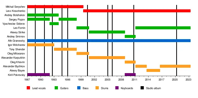 In 2011, Andrey Smirnov and Oleg Khovrin left the band. Alexander "Gips" took over the drums and Leo Fomin remained the only guitarist. Smirnov later played in the band Everlost, before joining former Accept singer Udo Dirkschneider's band U.D.O. in 2013.[3]