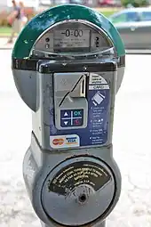 An in-vehicle parking meter is a handheld electronic device, the size of a pocket calculator, that drivers display in their car windows either as a parking permit or as proof of parking payment.[37] Implementation of IVPM began in the late 1980s in Arlington, VA,[38] and is spreading to campuses and municipalities worldwide as a centralized method of parking management, revenue collection, and compliance enforcement. Another technology offers the possibility of reloading money (parking time) to the device via a secure Internet site.