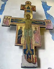 The Master of the Bigallo Crucifix or Bigallo Master (fl. 1215/20-1265) was an Italian painter active around Florence in the first half of the 13th century. He ran one of the first fully organized workshops before Cimabue, specializing in large painted crucifixes for churches, one of the main formats for panel paintings at the time. His notname comes from one of these in the Museo del Bigallo in Florence. A similar work is in the Palazzo Barberini site of the Galleria Nazionale d'Arte Antica museum, Rome.