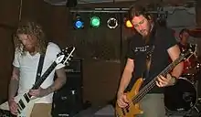 ![]() Mastodon performing live in 2012. From left to right: Brann Dailor, Brent Hinds, Troy Sanders and Bill Kelliher. | |