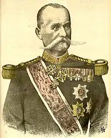 From November 1889 to February 1891, Vlădescu served as War Minister in the cabinet of Gheorghe Manu.[3] In 1892, he was named chief of staff to the royal household. He was awarded the Order of the Star of Romania.[1][2] Vlădescu died in Bucharest in 1901. He is buried in the cemetery of Viforâta Monastery, with a funerary monument sculpted by Carol Storck.[4][1]