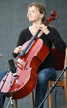 As a member of the Travelling Quartet[1] — Anne Gravoin and David Braccini[2] (violins), Vincent Pasquier[3] (double bass) and Mathilde Sternat — she makes arrangements of the repertoire of the art music of the 19th and early 20th centuries (Tchaikovsky, Brahms, Offenbach, Satie, among others) and arrangements of compositions of Jazz (Scott Joplin, Bill Evans, George Gershwin, Astor Piazzolla, notably) pop music (The Beatles…), film scores and French songs (Édith Piaf, Jacques Brel, Charles Aznavour, among others).