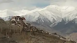 Matho Monastery, or Matho Gonpa or Mangtro Monastery or Mangtro Gonpa, from the Tibetan "mang" that means "many" and "tro" that means "happiness", is a Tibetan Buddhist monastery located 26 kilometres southeast of Leh in Ladakh, northern India, on the banks of the Indus River.[1] The village of Matho is located at the mouth of a deep gorge running out of the Zanskar Range and across the Indus. It is directly opposite Thikse Monastery.