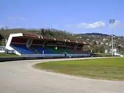 The stadium was built in 1946 and has a capacity of 1,470 seats.[1] It is currently used mostly for football matches and also hosts motorcycle speedway competitions since 1957,[3] including the Speedway Grand Prix of Slovenia as part of the Speedway Grand Prix World Championship series. During speedway competitions the standing area surrounding the track is opened for public and therefore the race can be viewed by more than 10,000 individuals.[2]