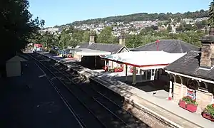 Matlock railway station is owned by Network Rail and managed by East Midlands Railway; it serves the Derbyshire Dales town of Matlock, Derbyshire, England. The station is the terminus of both the Derwent Valley Line from Derby and Peak Rail who operate heritage services to Rowsley South. Both lines are formed from portions of the Midland Railway's former main line to Manchester Central. Through running is technically possible but is not done in normal service.