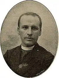 Mato Medović was born on 17 November 1857 in Kuna on the Pelješac peninsula into a peasant family.[1] Young Mato got his first education at a nearby Franciscan monastery dedicated to Our Lady of Loreto (Delorita).[2] In 1868, at the age of 11 he joined the Franciscan seminary in Dubrovnik, where he took his vows in 1874, taking the name of Celestin.[1] The artistic talent of the young monk was noticed by Abbot Portoguaro Bernardino, on a visit from Rome. So in 1880, Medović was placed in the monastery of St Isidoro in Rome, known for its Nazarene painters. He was assigned to Lodovico Seitz, an influential artist who painted the frescoes in the Cathedral of Đakovo.[2] However, the rigid and outdated artistic style did not suit Medović, and he looked for a different teacher in Giuseppe Grandi, then in the private school of Antonio Ciseri in Florence.[1]