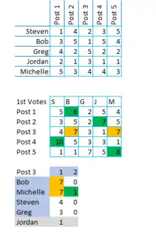 - The ballot paper is tabular, a matrix, ten by ten: on one axis are listed the ten ministerial posts to be elected, and on the other axis are the ten preferences.