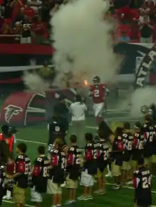 The Falcons had a down year, where they recorded a 4–12 record due to multiple injuries and losing key players on both sides of the ball.[156] Ryan did record some impressive individual performances in the down season. In Week 2, against the St. Louis Rams, he had 374 passing yards and two touchdowns in the 31–24 victory.[157] Against the New England Patriots in Week 4, he was 34-of-54 for a then career-high 421 yards with two touchdowns and one interception in the 30–23 loss.[158] In his performance against the Patriots, Ryan became the first quarterback in franchise history to have multiple games with at least 400 passing yards.[159] Against the Tampa Bay Buccaneers in Week 7, he was 20-of-26 for 273 yards and three touchdowns for a 148.4 passer rating in the 31–23 victory to earn NFC Offensive Player of the Week.[160][161] After the victory, the Falcons were 2–4 with all the losses being by a combined 19 points. However, the rest of the season collapsed starting with five consecutive losses, which the team never recovered from.[162] In Week 8, against the Arizona Cardinals, he had a career-high 61 pass attempts for 301 yards, one touchdown, and four interceptions in the 27–13 loss.[163]