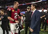 Ryan immediately made an impact by taking the Falcons to the playoffs in his first season, earning him Offensive Rookie of the Year. During his Atlanta tenure, he led the team to six playoff appearances and three division titles and received four Pro Bowl selections. His most successful season was in 2016 when he was named Most Valuable Player (MVP) and led the Falcons to an appearance in Super Bowl LI. Ryan was traded to the Indianapolis Colts in 2022, where he spent one season. After being released by the Colts, Ryan joined CBS Sports as an NFL analyst, but has not retired from football.[1]