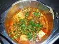 It is often served with rice and an Indian type of bread (naan, paratha, poori, or roti depending on region). Various other ingredients are often added, such as potato (aloo), corn, yogurt or cream.[7][8]