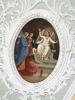 ![]() An artistic depiction of the women hearing from the angel at the grave | |