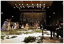 Aviary (2011) was a set design for Phillip Adams Balletlab. The project premiered at Melbourne Festival, Arts House North Melbourne Town Hall 2011 and later toured at MONA FOMA, Theatre Royal Hobart in 2012 and Teo Otto Theater Remscheid Germany in 2014.[13]