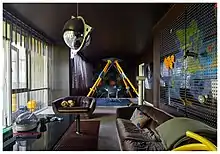 Theodore Treehouse (2016), an apartment fit-out in Melbourne features pop references and pushes the boundaries of decoration for a residential space. The spaces within the home are innovative and theatrical, while also inviting, incredibly crafted and utterly bespoke. With each room curated in equal measure as part installation exhibit, part stage, the interior contains a touch of the "whimsical voyeur," leaving us wanting to peep a little further. Theodore Treehouse uses a non-traditional delivery strategy. The impeccable execution and playful experimentation of this project contributes in an extremely positive and joyous way to contemporary decoration practice.[7]
