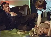 Matthew's most prominent storyline spans a year and begins on the Valentine's day episode in February 1999. After developing a friendship with club owner Steve Owen (Martin Kemp), Matthew is present to witness Steve accidentally killing his ex-girlfriend Saskia Duncan (Deborah Sheridan-Taylor) by hitting her on the head with a marbel ashtray following her jealous attack on him. Saskia's death was first screened in a lengthened 45-minute episode on a Sunday evening, deviating from EastEnders' typical broadcasting weekday slots.[3] Executive producer Matthew Robinson has alleged that Saskia's death scene had to be reshot because it was deemed too violent: "When we played back the film, it was fantastic - too fantastic. It looked so real that I knew we couldn't broadcast it. EastEnders goes out before the nine o'clock watershed, children watch it - and we can't show outright scenes of graphic violence. We had to do the whole thing again. It took almost two hours and the three actors were emotionally and physically exhausted. In the end we got what we wanted."[3] After the killing, Steve fears that police will not believe it was an accident, convinces Matthew to help him cover-up the death and they bundle Saskia's body into a bin liner and bury it in a wood. Robinson said, "This is an exciting plot and it'll keep us occupied for much of the next year."[3]
