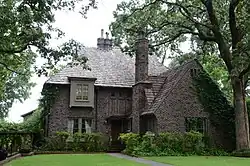 The Matthews-MacFayden House is a historic house at 206 Dooley Road in North Little Rock, Arkansas. It is a two-story brick structure, with gable-on-hip roof, and a projecting single-story gable-roofed section on the right side of the front. Decoratively corbelled brick chimneys rise at the center of the main roof, and a projecting wood-framed oriel window adds a distinctive touch to the front. The house was built in 1930 by developer Justin Matthews as part of his Edgemont development, and was designed by his company architect, Frank Carmean. It is a picturesque example of English Revival architecture.[2]