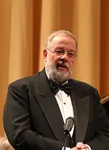 Matti Kalervo Salminen (born 7 July 1945) is a Finnish operatic bass, now retired,[1][2] who has sung at the most important opera houses of the world, including the Metropolitan and Bayreuth Festival.[3] He is distinguished by an imposing figure and height (6' 5"),[4] a cavernous, heavy, dark voice with an expansive upper register, and an expressive face. According to one reviewer, in his prime Salminen was "... simply the largest bass voice in captivity. It is not just its roar in powering over Wagner's maximum orchestra, but the way he carves the sonority and forms the color."[5]