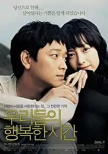 Maundy Thursday (Korean: 우리들의 행복한 시간; RR: Urideului haengbokhan shigan; lit. Our Happy Time) is a 2006 South Korean film directed by Song Hae-sung based on a bestselling novel by Gong Ji-young.[2] Starring Gang Dong-won and Lee Na-young,[3] the film is about a convicted murderer awaiting execution, and the bond he forms with a suicidal young woman who starts visiting him in jail every Thursday.