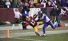 On September 2, 2017, Harris was waived by the Redskins, and was signed to their practice squad the next day.[8][9] He was promoted to the active roster on November 11, 2017.[10] The following day, he caught a one-handed 36 yard pass against the Minnesota Vikings, the first touchdown of his career.[11]