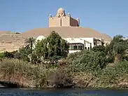 The mausoleum sits atop a hill along the west bank of the Nile, where it overlooks Aga Khan III and Begum Om Habibeh Aga Khan's villa, the Prince Sadruddin Aga Khan House.[4] The villa was designed by Egyptian architect Hassan Fathy, and it served as a winter home for Aga Khan III, whose will stated that he would be buried near the villa two years after his death.[4][5]