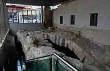 The long-forgotten bridge might have been unearthed in 1946 during a city sewage project when a part of the arch was found. But unconscious of its historical value, the constructor partially damaged it while laying water pipes. It was only recently that the two arches were rediscovered. In 2002, during the renewal of Danyal's Mosque to add a abdestlik ("wudu place"), the constructor unearthed a part of a big arch several meters underground. After a rescue excavation by the Ministry of Culture and Tourism in 2006, the arch of a drop-vault bridge and an accompanying small building, which houses an Islamic tomb, were unearthed.[3] Although there was no inscription on the tomb, it was popularly taken to be the tomb of Danyal in accordance with the popular belief.[5]