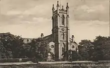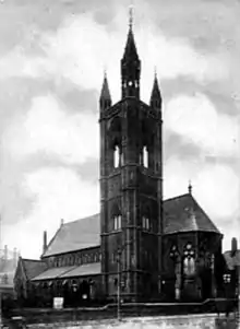 The former Church of the Holy Trinity on Eastgate, Louth, Lincolnshire, was designed by C. Rogers and Marsden of Louth,[93] who also designed Louth Market Hall.[94] The church was consecrated on 5 April 1866, although it was completed "several years" before that. The nave burned down in 1991,[95][96][97] but the tower remains.[98] The nave was replaced in 1997–1998 by the Trinity Centre.[99]