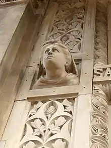 Christ Church, High Harrogate, North Yorkshire, is a Grade II listed building designed in 1831 by John Oates (1759–1818) and Thomas Pickersgill (1807–1869) of Huddersfield. Between 1861 and 1862 Lockwood and Mawson of Bradford and Leeds added transepts, a chancel, an organ chapel and a vestry.[58] The enlargement was completed on 29 June 1862. The Yorkshire Gazette reported that this included the following carved stone elements:[59]