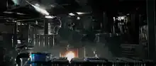 Upon finding the building for the Aesir Headquarters it took eight weeks in pre-production to build the set and another week for the special effects team to install the squibs.[14] The outside top half of the building was completely made of CG, by Mr.X, giving it a more high tech look. Using Google Earth they were able to find out the building's geometry. No location could be found for a rooftop helipad so a set was built in front of a green screen. Soho VFX attached the helipad to the building and set it atop New York City.[15]