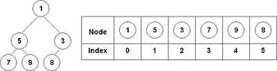Let n be the number of elements in the heap and i be an arbitrary valid index of the array storing the heap. If the tree root is at index 0, with valid indices 0 through n − 1, then each element a at index i has