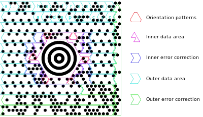 The structured portion of the message is stored in the inner area of the symbol, near the bull's-eye pattern. (In modes that do not include a structured portion, the inner area simply stores the beginning of the message.)